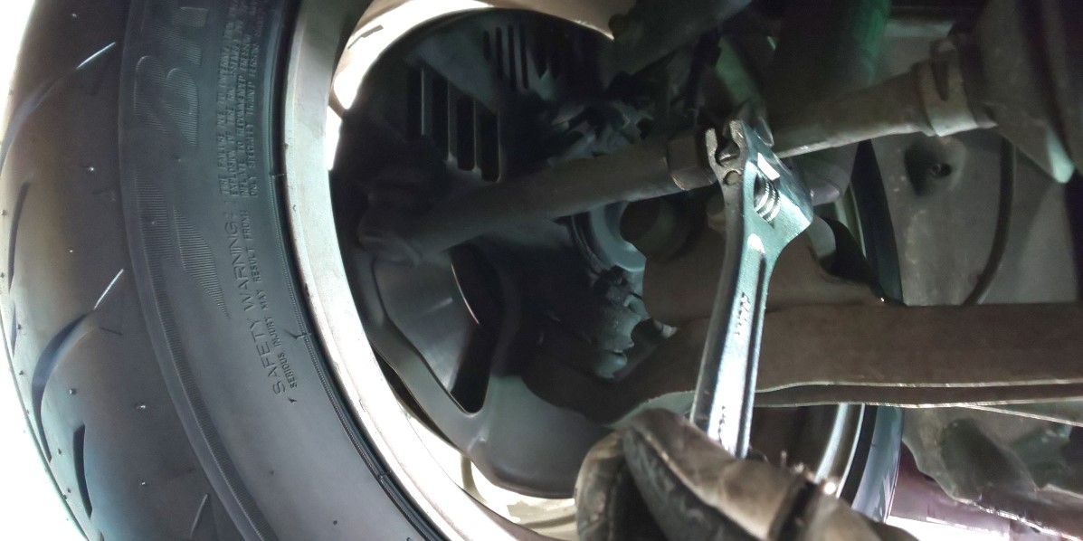 こちらのお車は車高を調整させていただいた時に、タイヤの内減りがひどくタイヤを交換して、アライメント調整をさせていただきました。