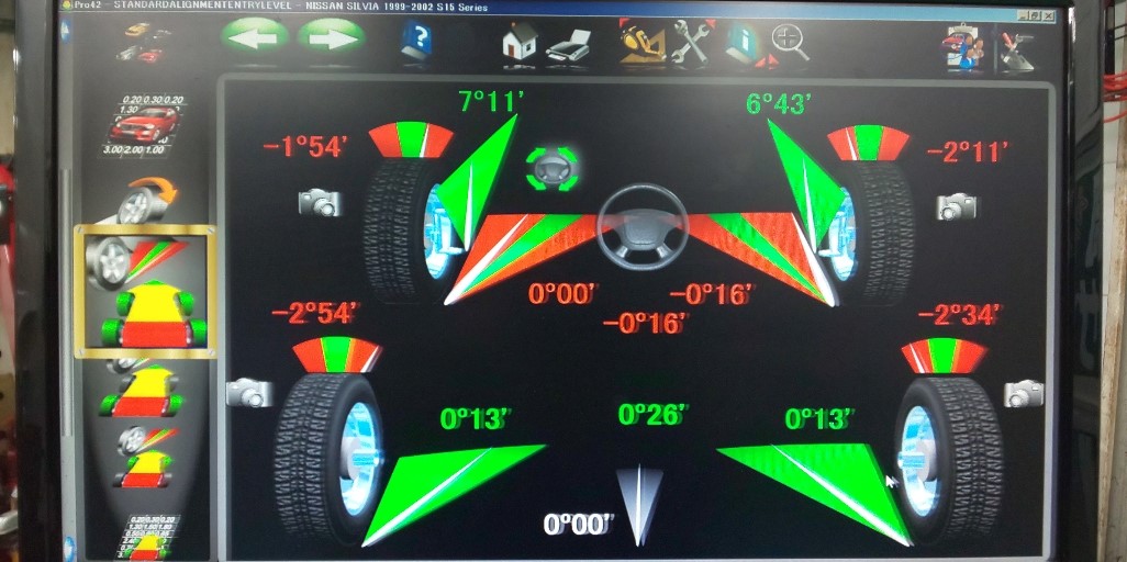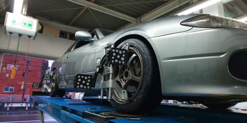 車高を変えるとアライメントはどうしてもズレてしまいますのでお時間はいただいてしまいますが車高調整とアライメント調整はセットでお考え下さい。