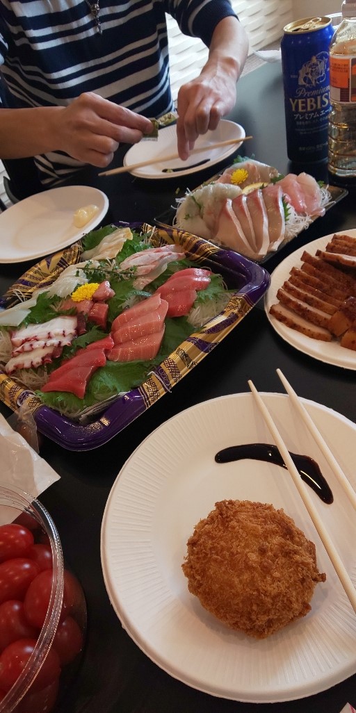 ですが予報は雨マークが出てしまい予定を変えて一人の友人の自宅の近くで宴会用の部屋を借りてホームパーティーに変更しました(;一_一)