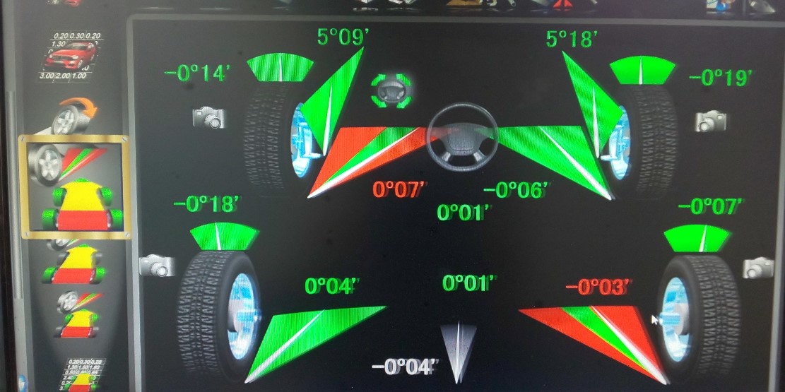 どんなお車も長年使っているとどうしても基準値からズレてしまいますのでタイヤの溝があるときのほうがより正確に数値が出せますのでタイヤ交換と同時にお勧めさせていただいております。