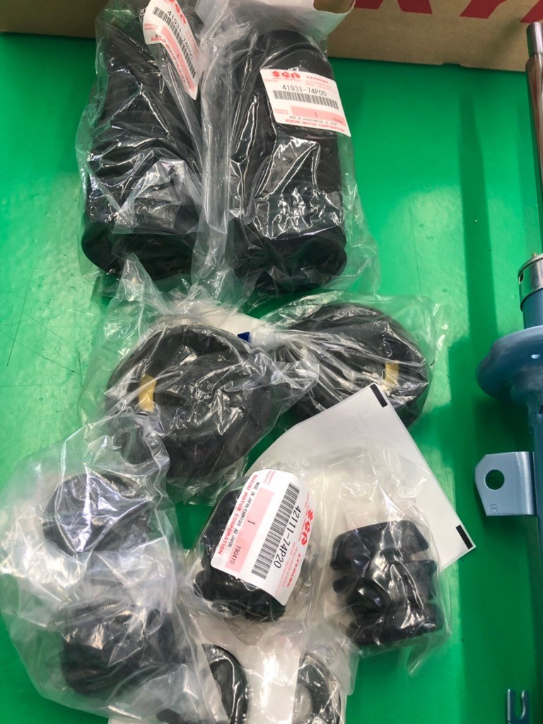アッパーマウントやダストブーツなどの純正部品も事前に用意して早速取り付けていきます。
