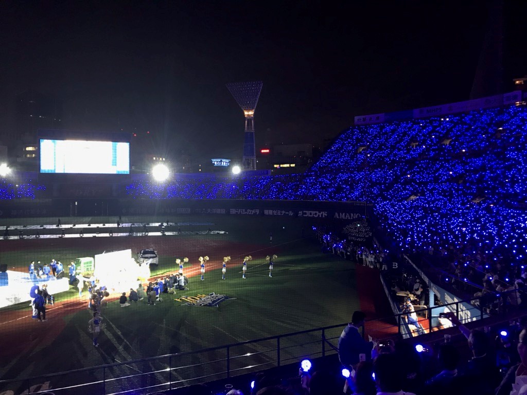 夜は横浜スタジアムに野球観戦に行きました。