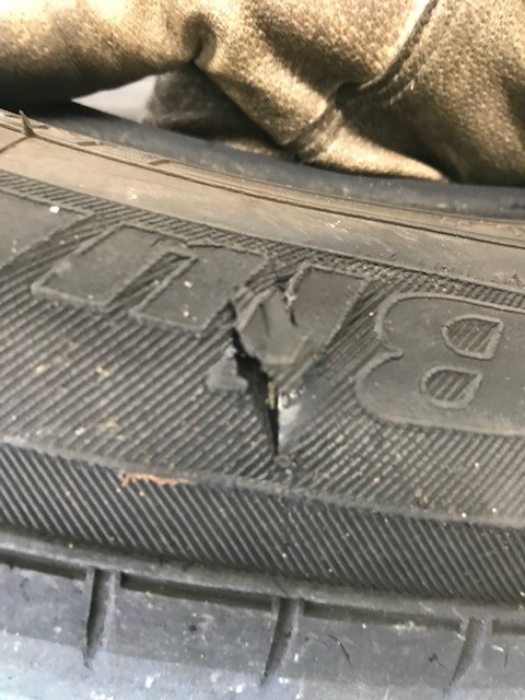 これは鈑金修理で入庫したお車のタイヤですが、サイド部分が