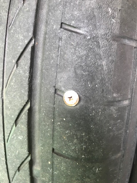 釘を踏んでパンクしてしまったそうで、危険なので新品交換となりました。