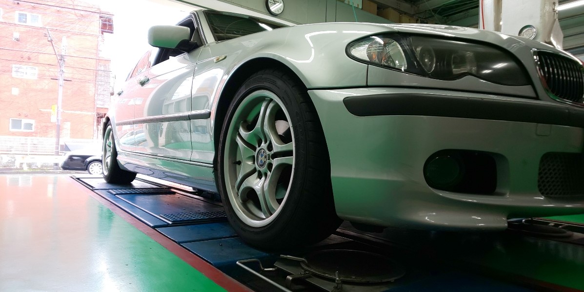 本日のアライメント調整は「BMW 3シリーズ」です。