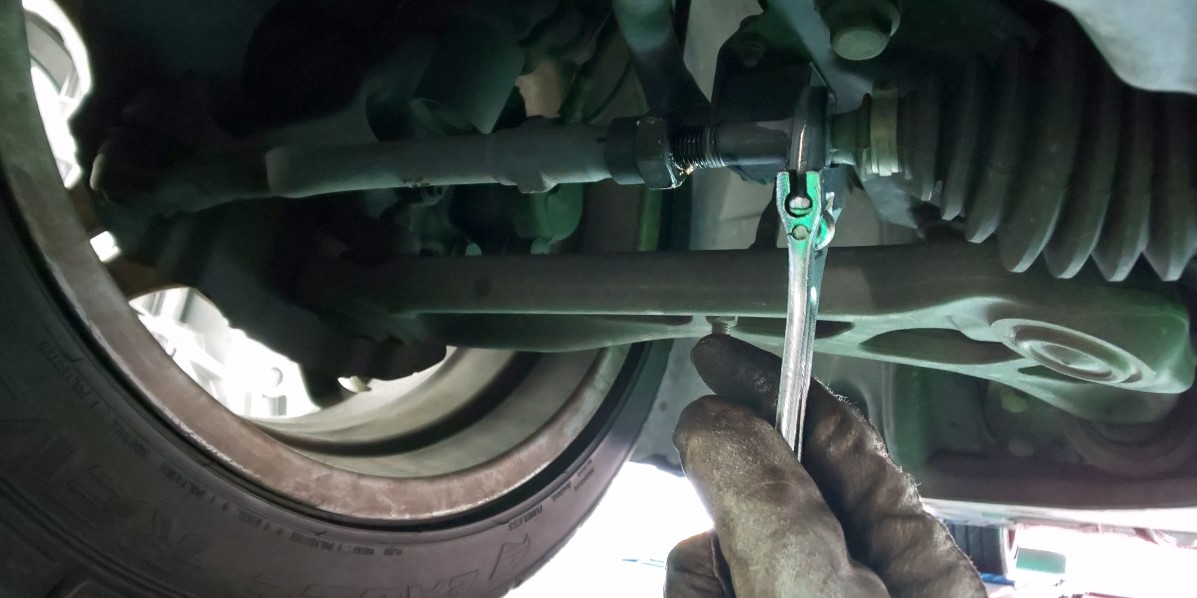 こちらのお車は鈑金修理をされて足回りを分解されてハンドルのセンターがズレてしまい修正の為ご依頼を受けました。