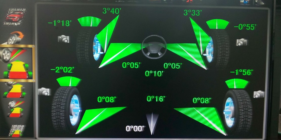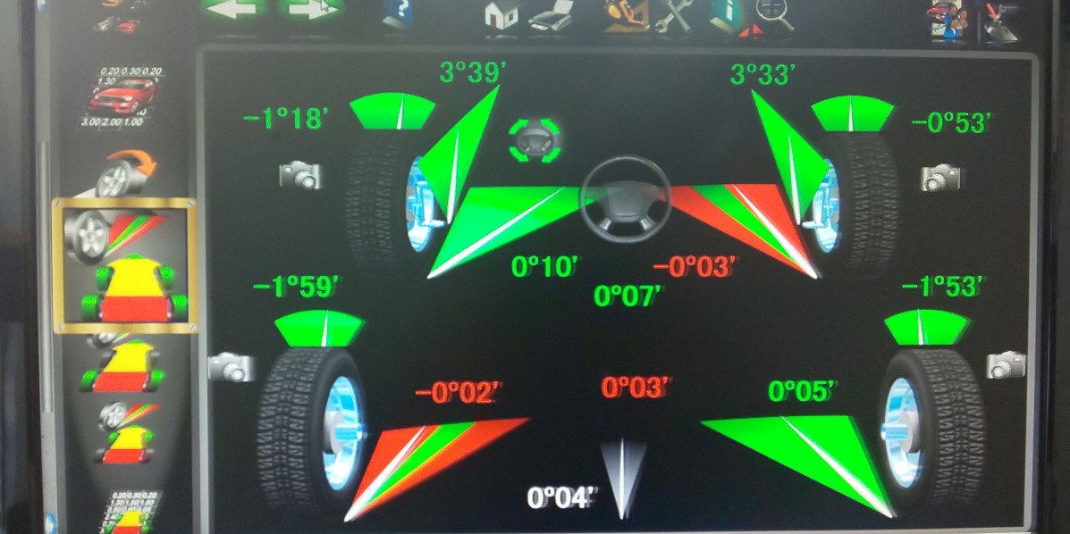 乗った感じは大丈夫でも機械を取り付けて診断をしてみるとはっきりと数字が出ますのでタイヤ交換のときはアライメント調整はセットでお考え下さい。