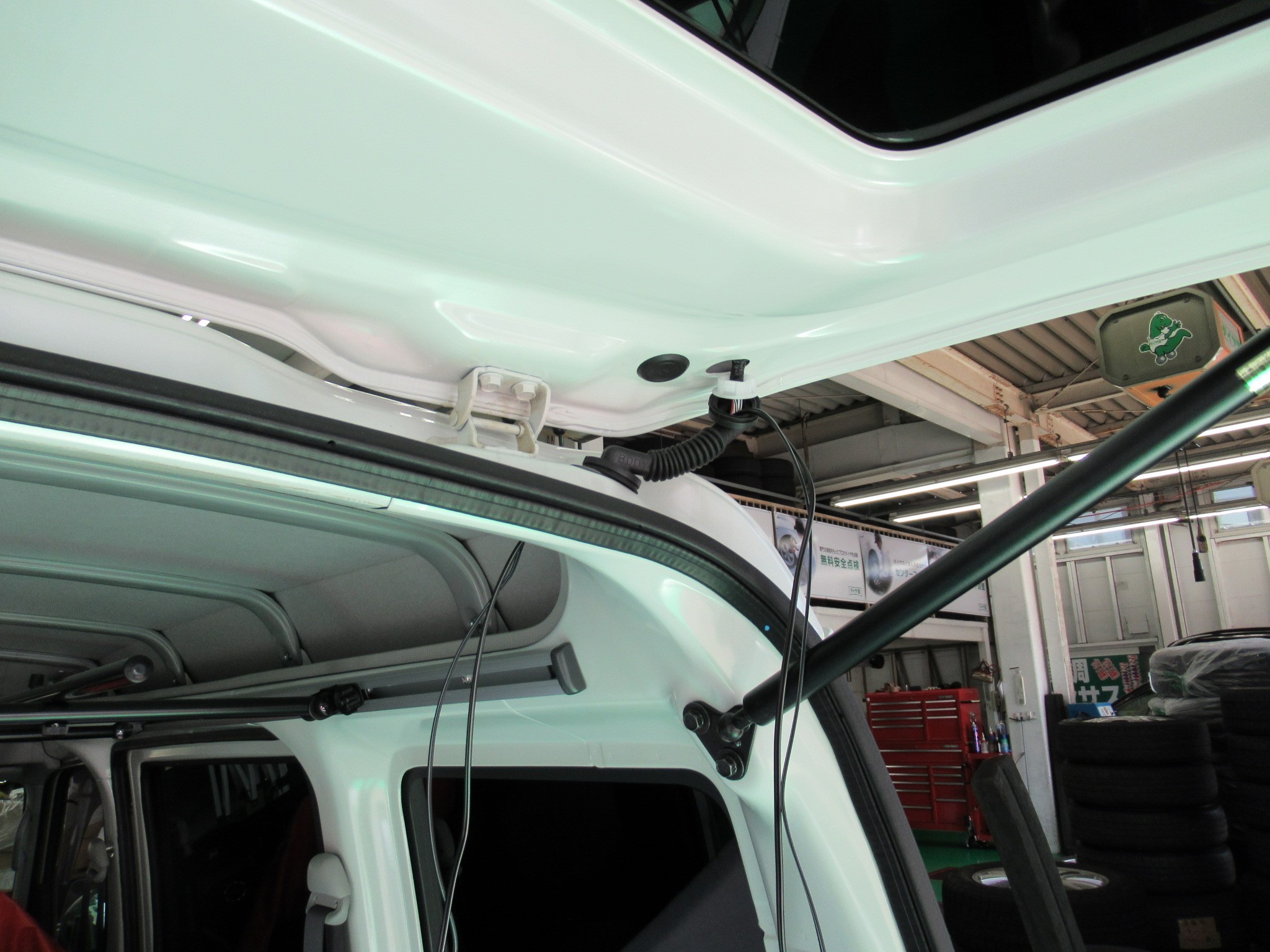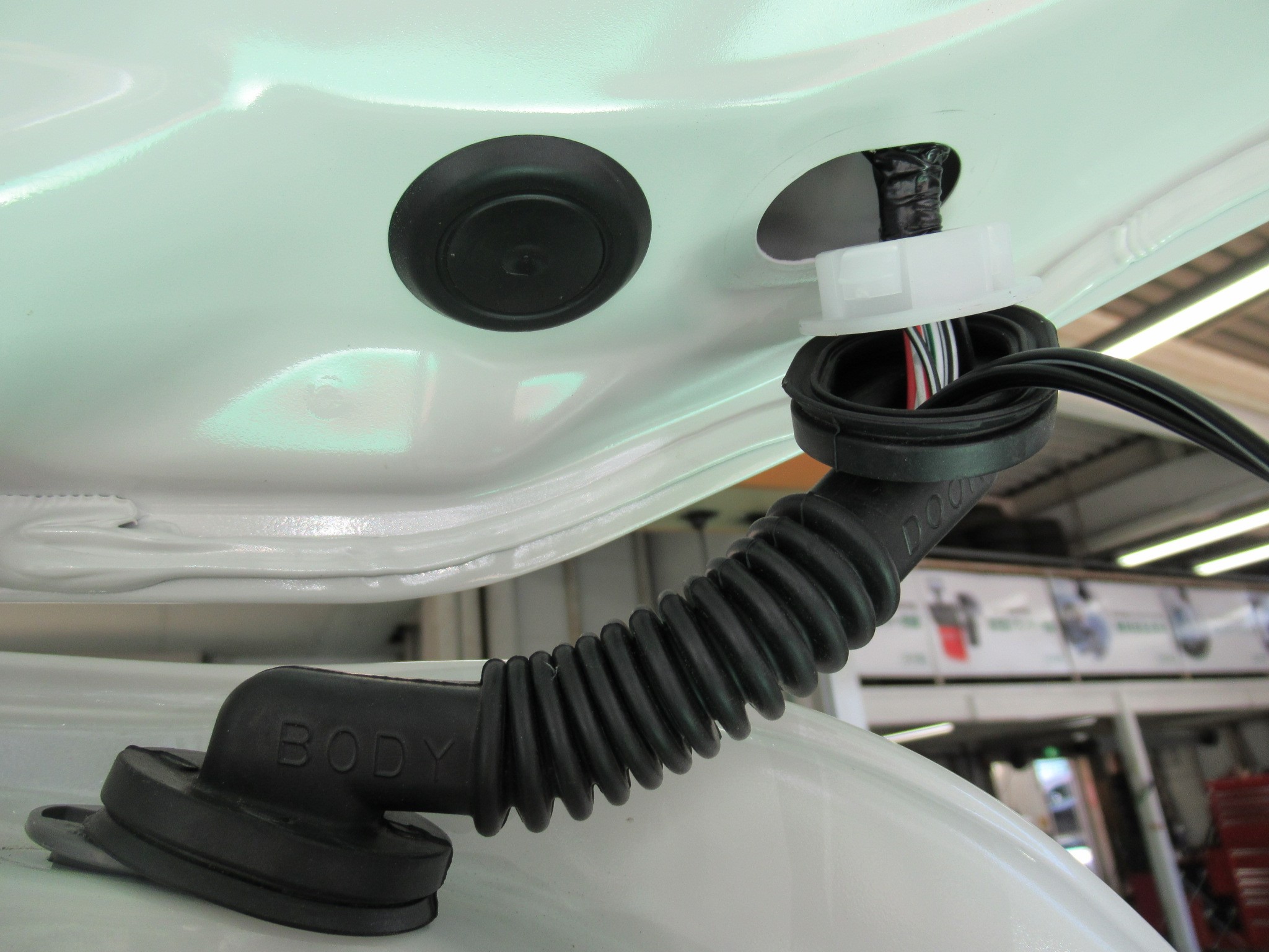 配線をリヤハッチの中に通していきますが、これはコツが必要なので注意。