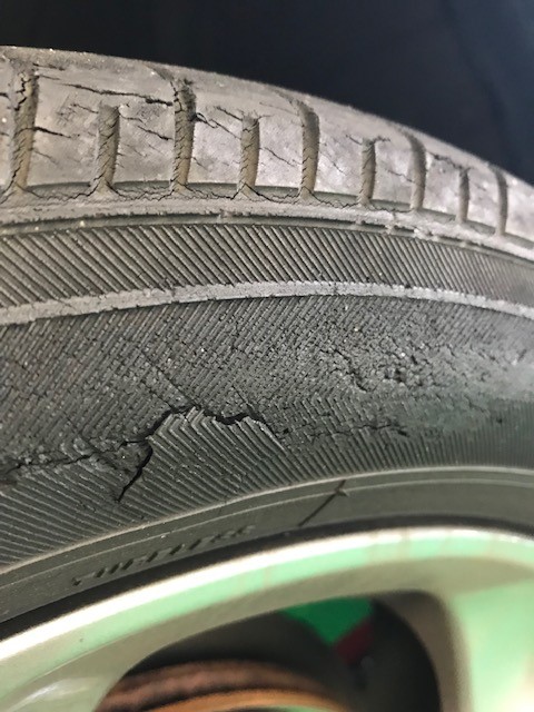 10年前ぐらいのタイヤが装着されていたのでひび割れによって