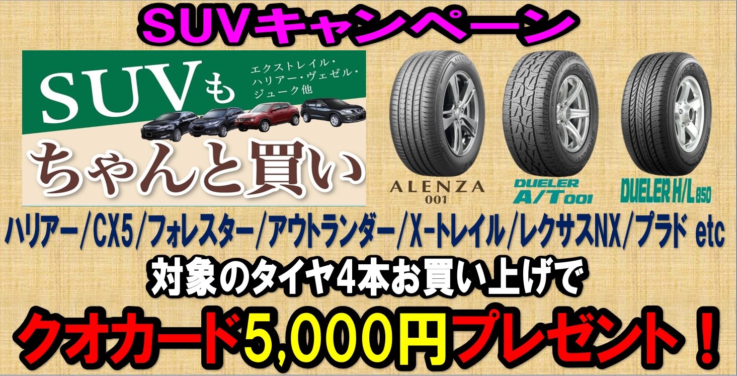 当店お勧めの「ブリヂストンSUV車専用タイヤ」を期間限定でお勧めさせていただくイベント!
