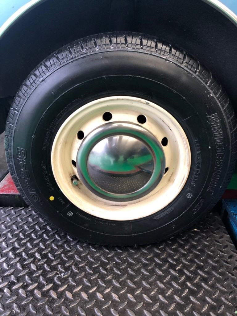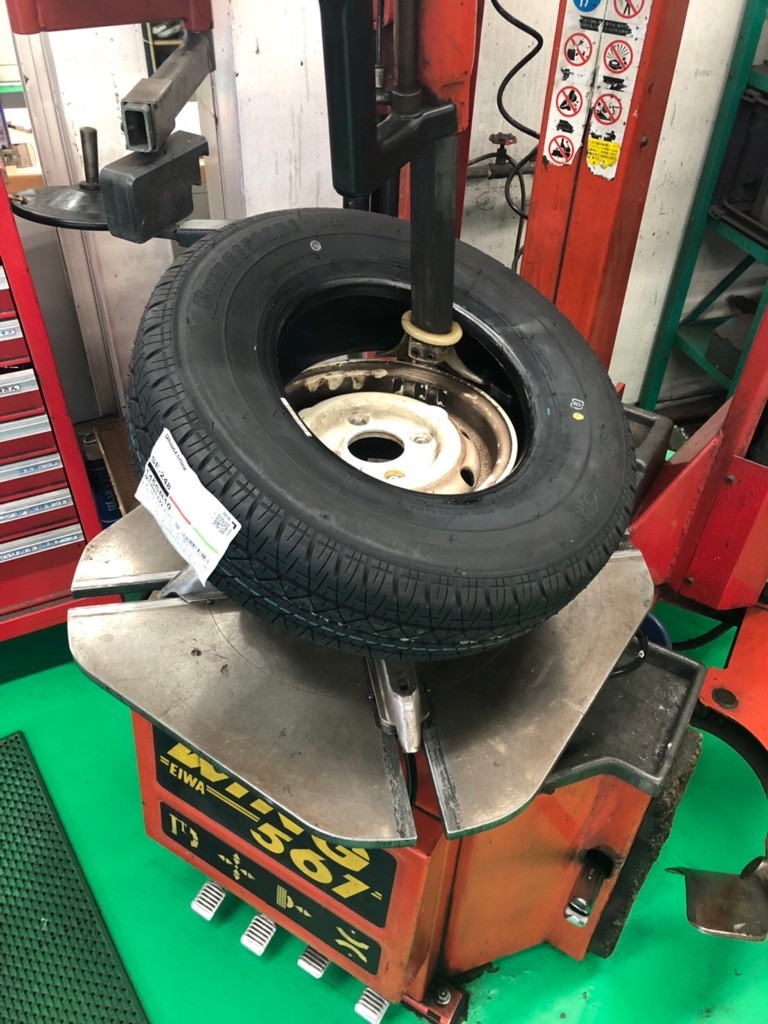 この車自体が今では珍しいのですが、タイヤもなんともまー珍しいサイズです。