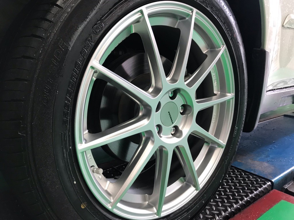 今回はタイヤは再使用させていただきアルミホイールのみの交換を行いました。