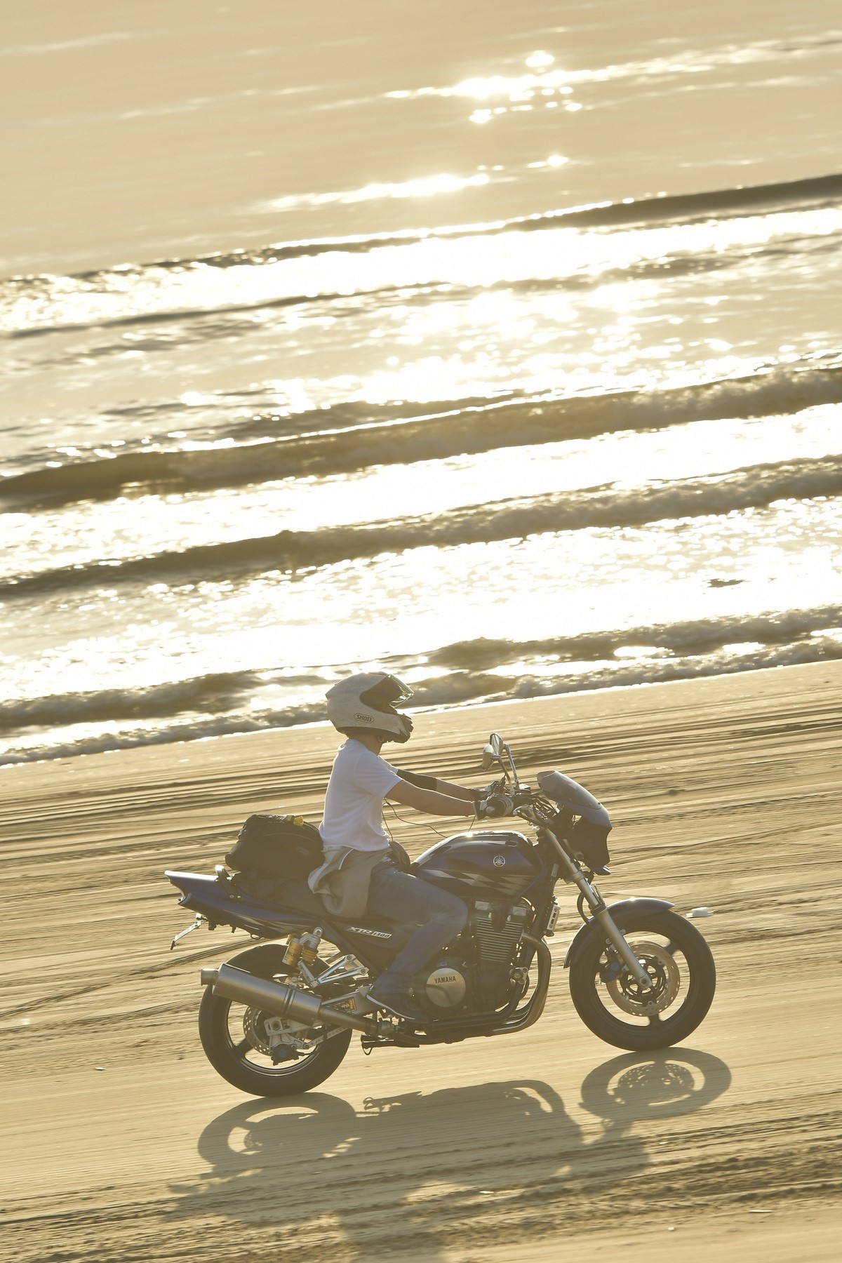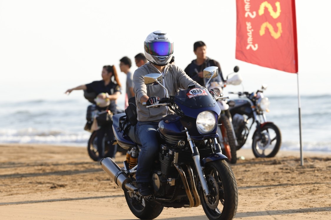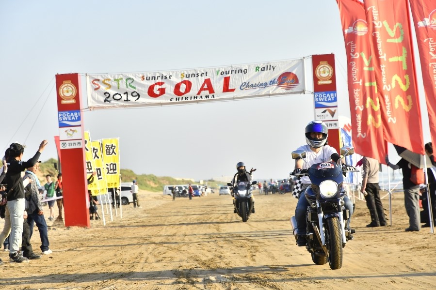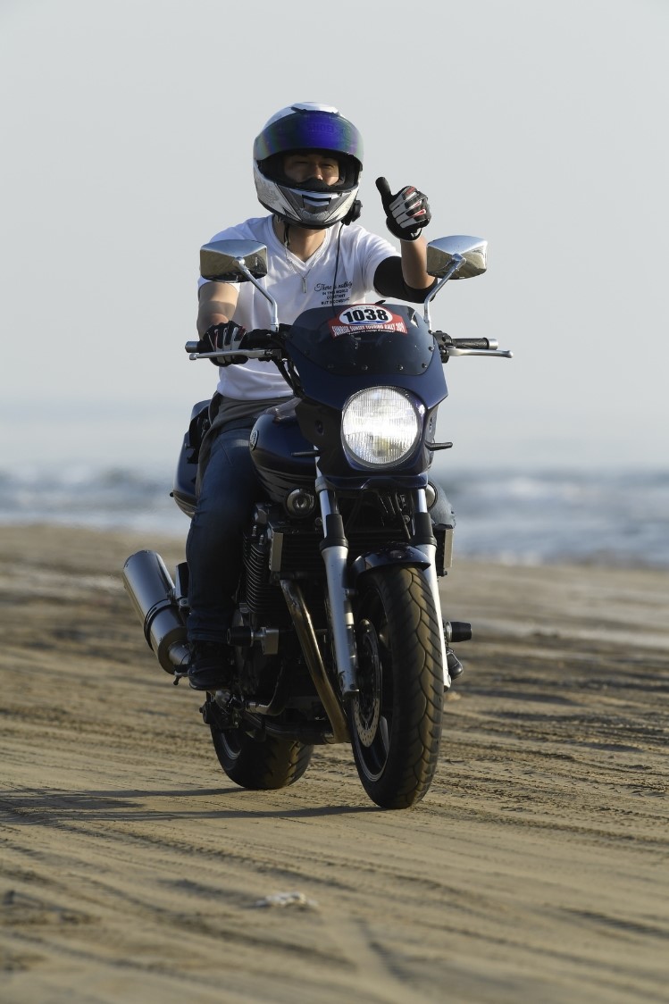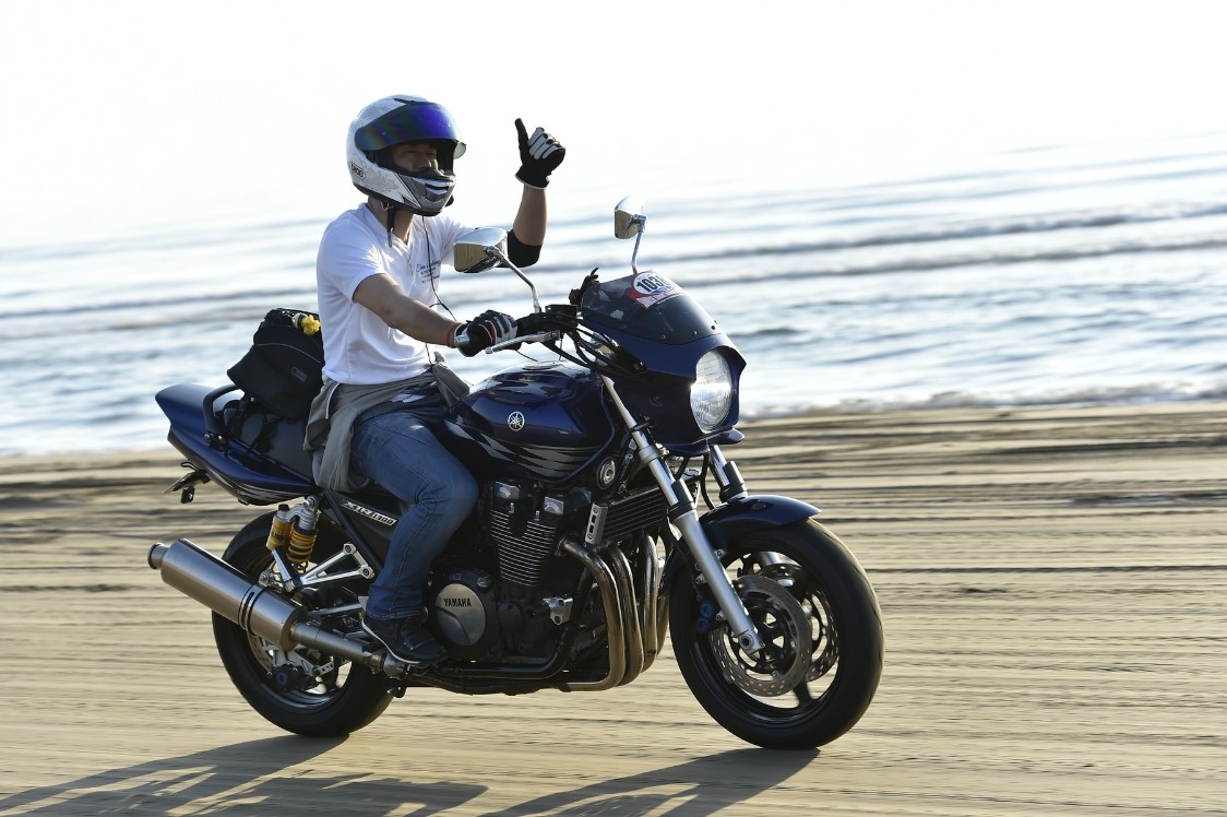 千里浜の砂浜を走行している自分では撮影できない貴重な写真です(^^♪