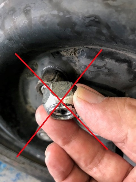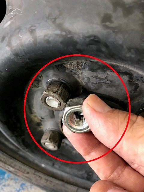 ナットが緩んでタイヤが飛んでいく事になる所でした。