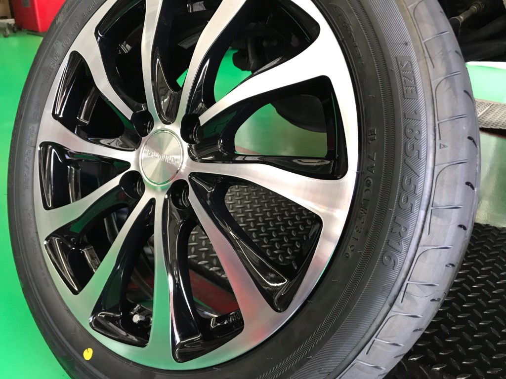 純正サイズは175/65R15ですが、高速安定性をもう少し向上させたいという事でしたので、使い勝手や乗り心地に配慮して16インチへアップしていきます。