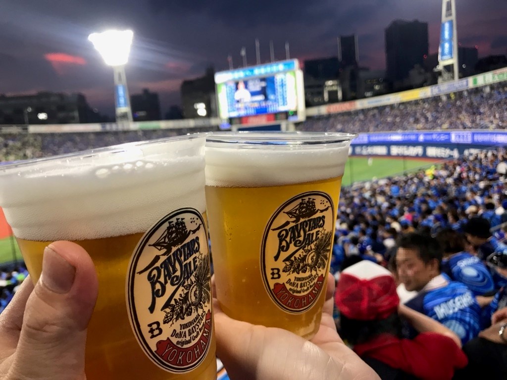 連日の猛暑で試合開始の17:45分の時点ではまだまだ相当暑さが残っておりましたが、ここはおいしいビールでクールダウンです。