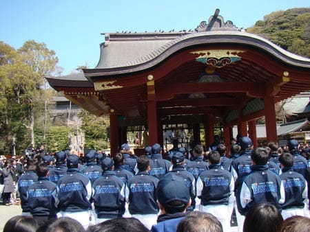 この日ベイスターズの監督、コーチ、選手一同が鶴岡八幡宮で必勝祈願を行ないました。