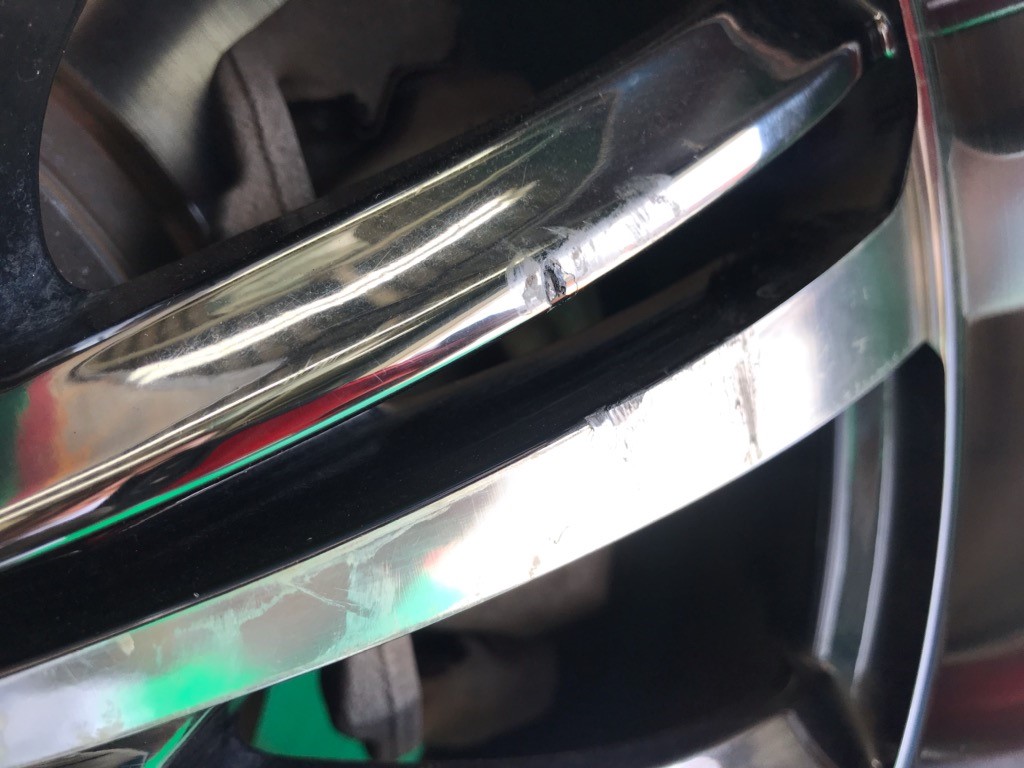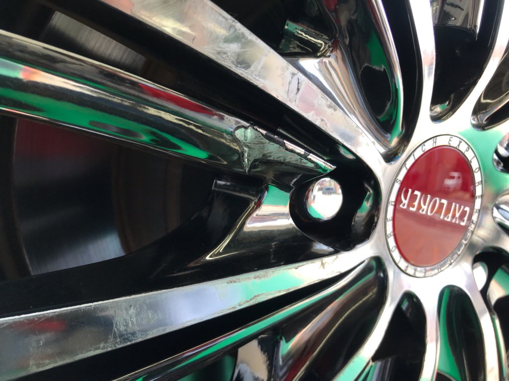 タイヤホイールには大きな傷がついたままです。