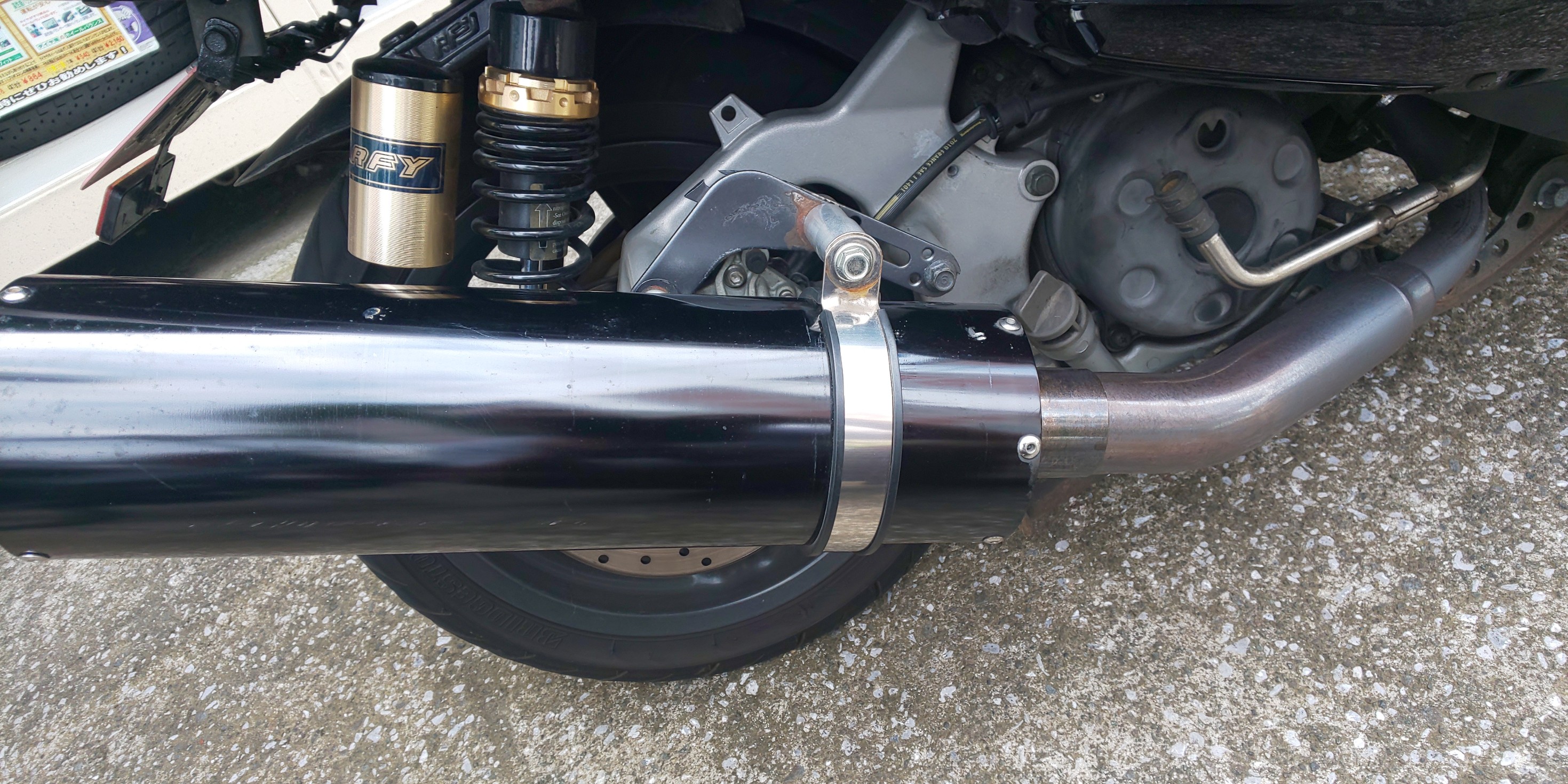 自分の愛車の1台にスクーターがあるのですが最近やたらとマフラーの音がうるさくなってきたので見てみるとマフラーの結合部が外れかかっていたためマフラーが異常にうるさくなっていたんですね!Σ(×_×;)!