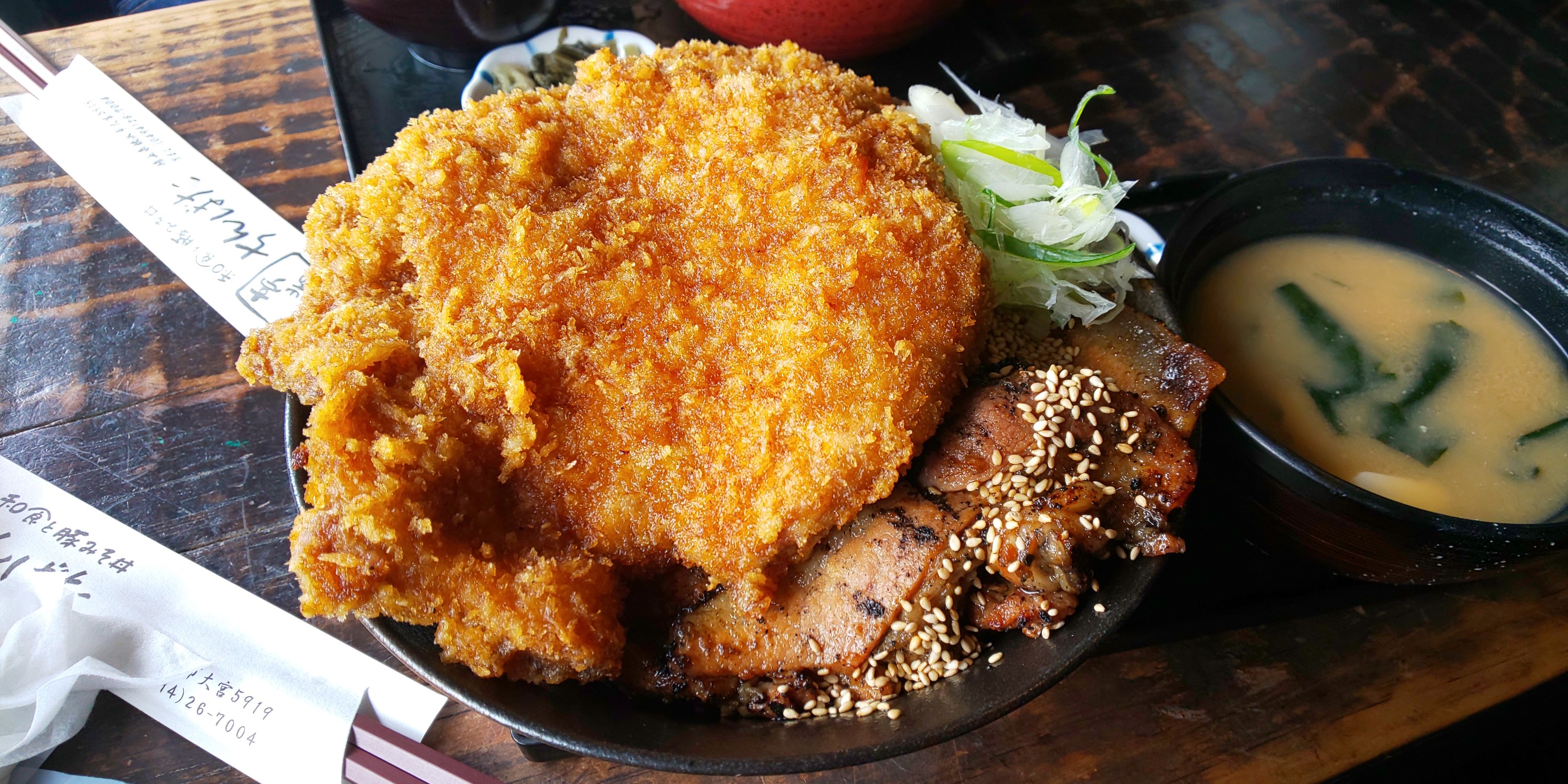 そのカツの下には味噌焼きされた豚肉が隠されてますΣ(・ω・ノ)ノ!