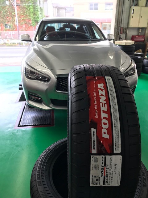 今回は、純正でランフラットタイヤ装着されている日産スカイライン。