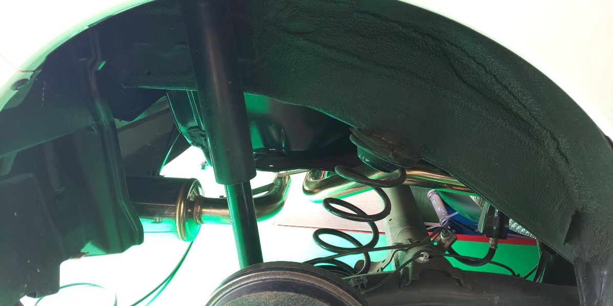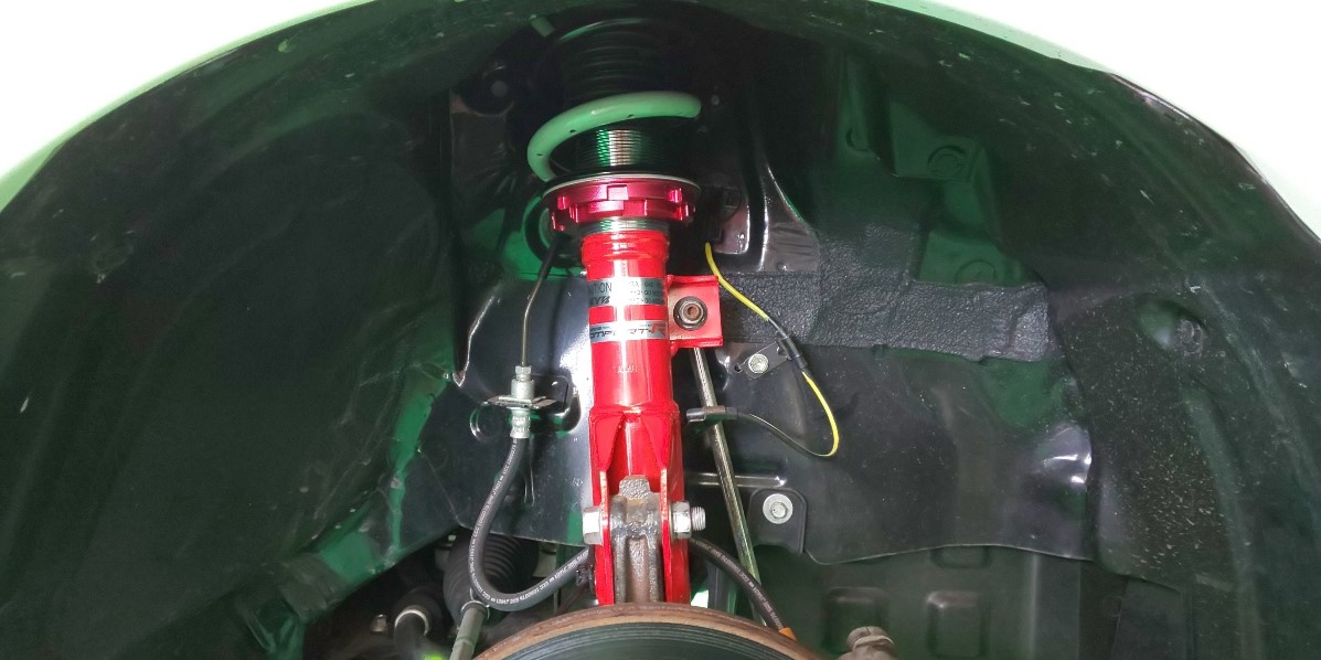 車高調のいいところは自由な車高に出来るところなのでお客様と相談しながらどのくらいにするかを決めました。