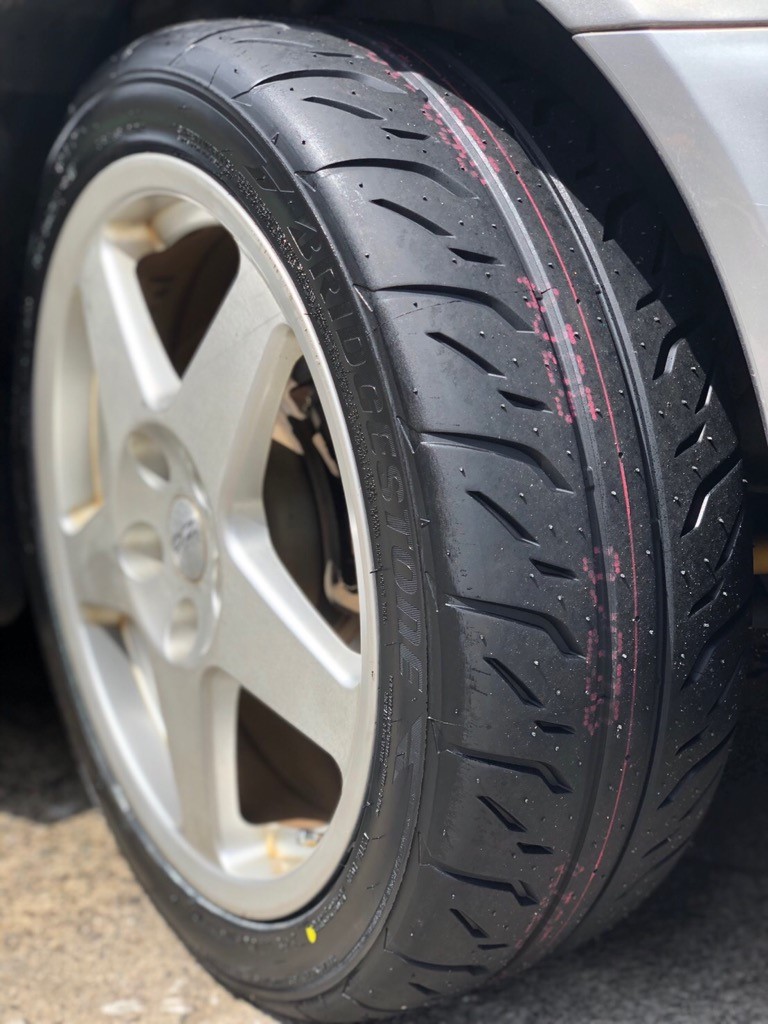 えー、今回はシルビアのタイヤ交換です、タイヤはポテンザ「RE71R」です。走りのタイヤですね。