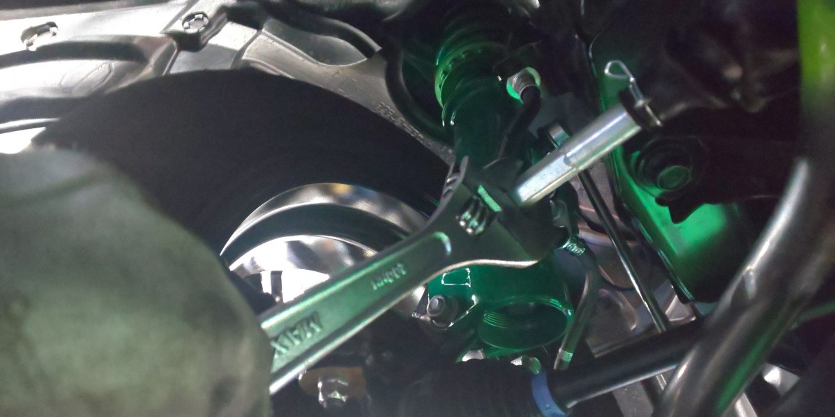 こちらのお車は足回り交換の後なのでアライメント調整を同時に作業させていただきました。