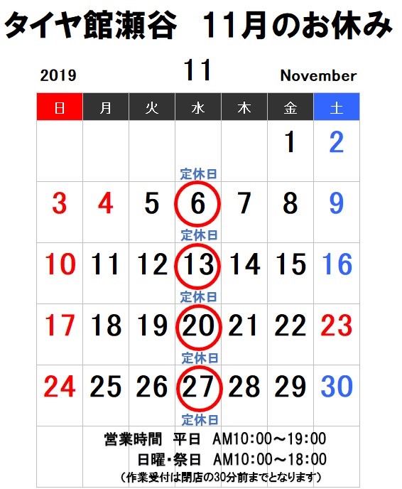 11月の定休日のご案内です ポスト 2019年11月1日 11月のお休みは 6日(水) 13日(水) 20日(水) 27日(水) です。 営業時間は 平日 10:00~19:00 (受け付けは閉店30分前18:30まで) 日・祝 10:00~18:00(受け付けは閉店30分前17:30まで) 11月もお客様のご来店をスタッフ一同お待ちしております。 カテゴリ:お知らせ