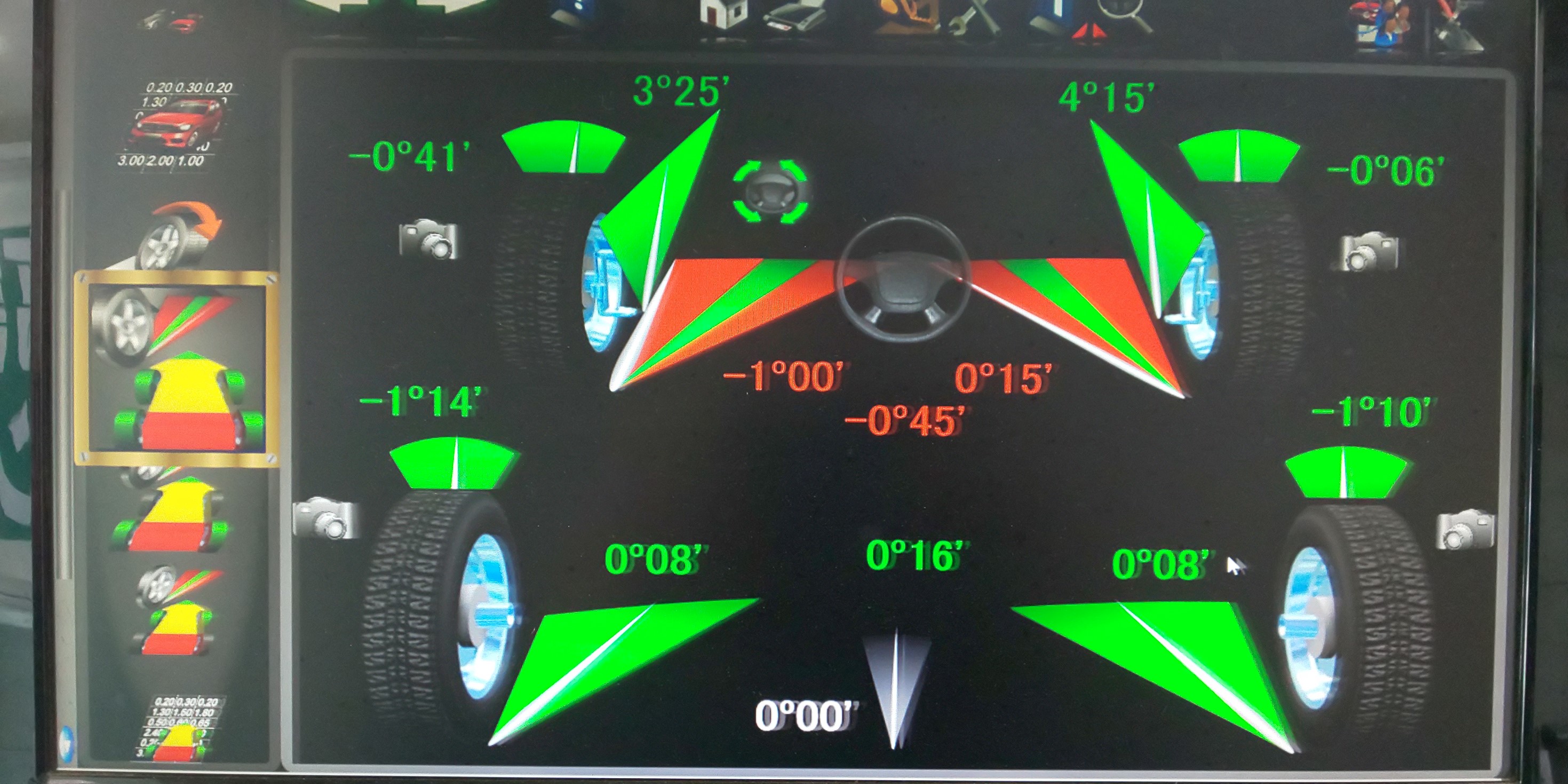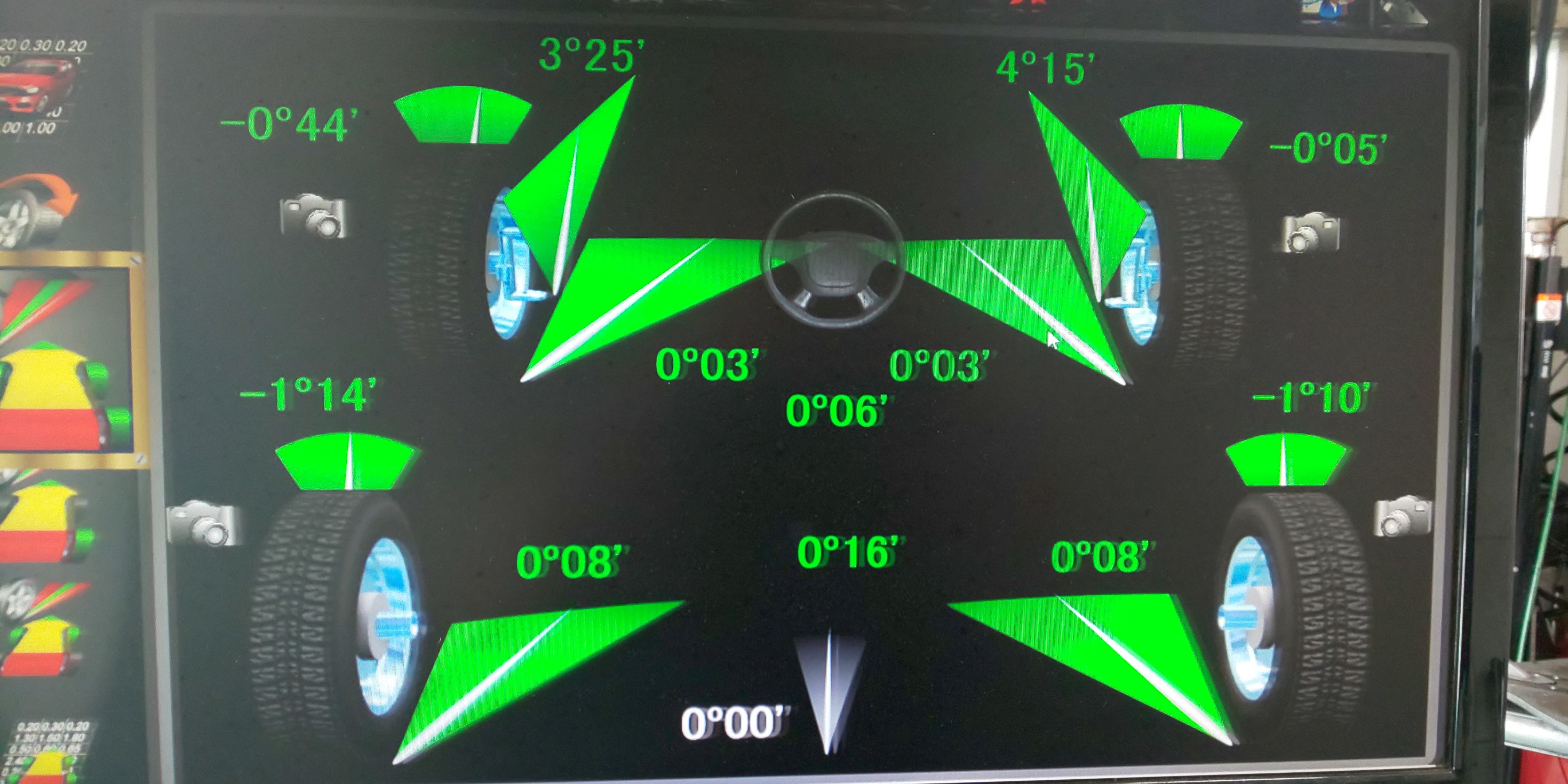 お客様ご自身でお取り付けをされて乗ってみると車が左に寄っていくとの事でしたのであらいめんとアライメント調整をさせていただきました。。