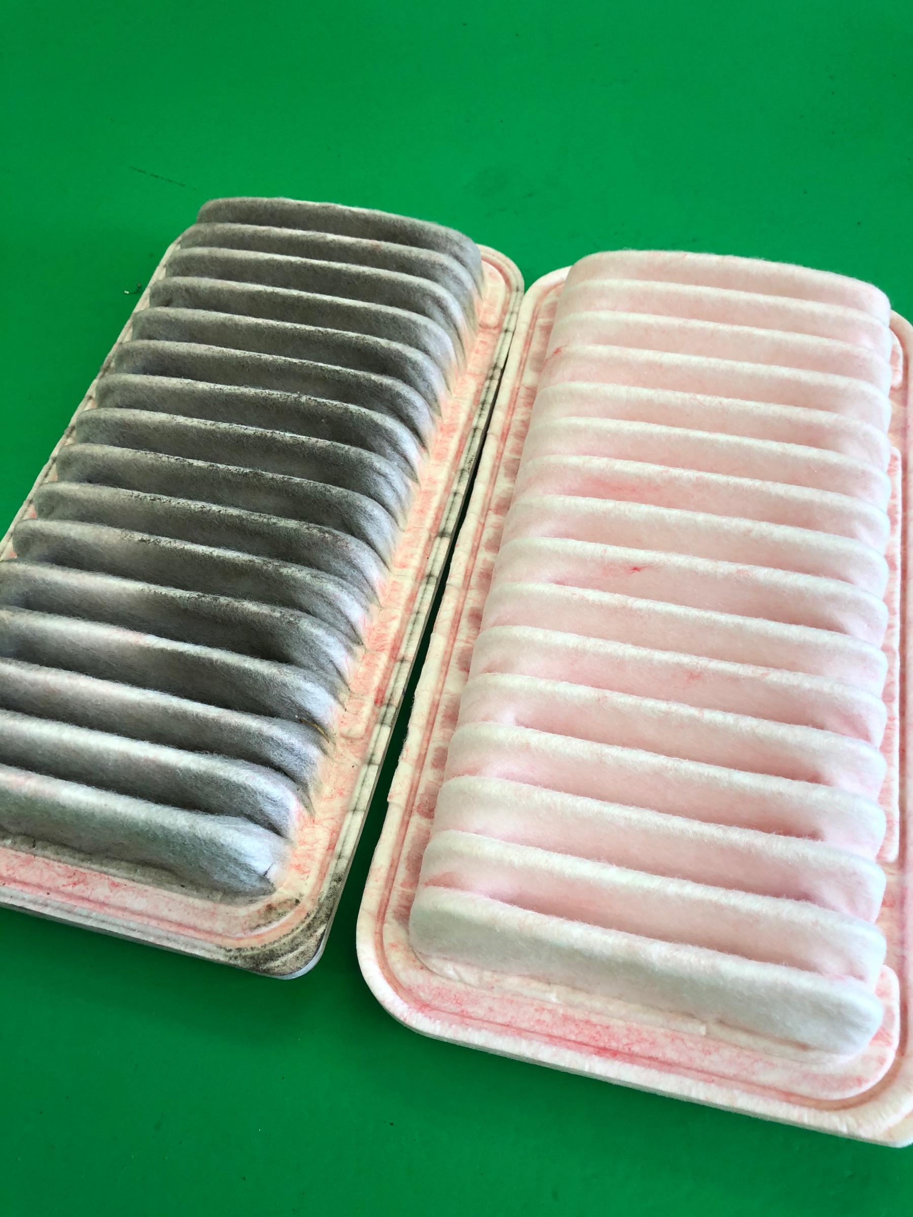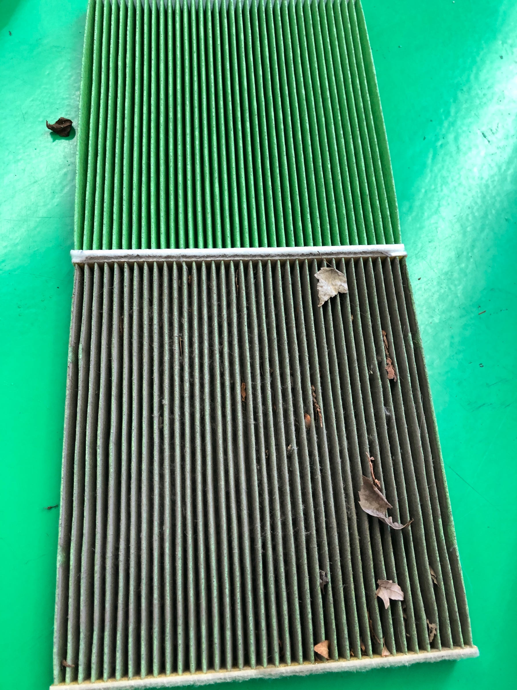 エアクリーナーは真っ黒になっており、エアコンフィルターはゴミが詰まりひどいことになっていました。