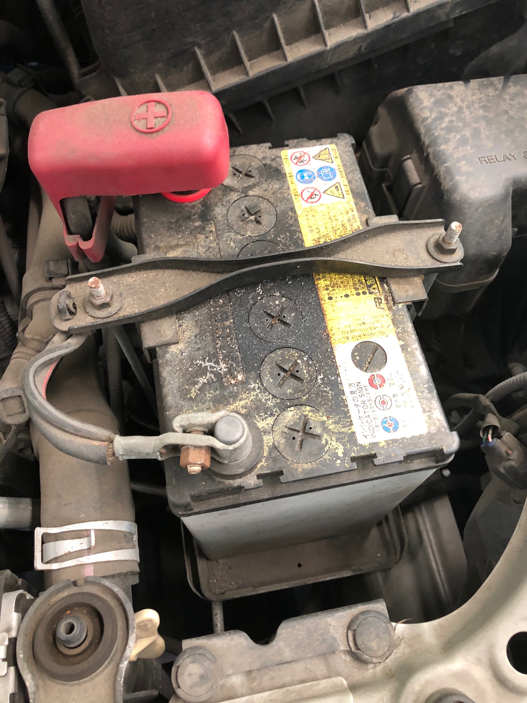 バッテリーも何年も使用しており見るからに交換が必要そうだったのでテスターを使用して測定してみるとやっぱり要交換でした。