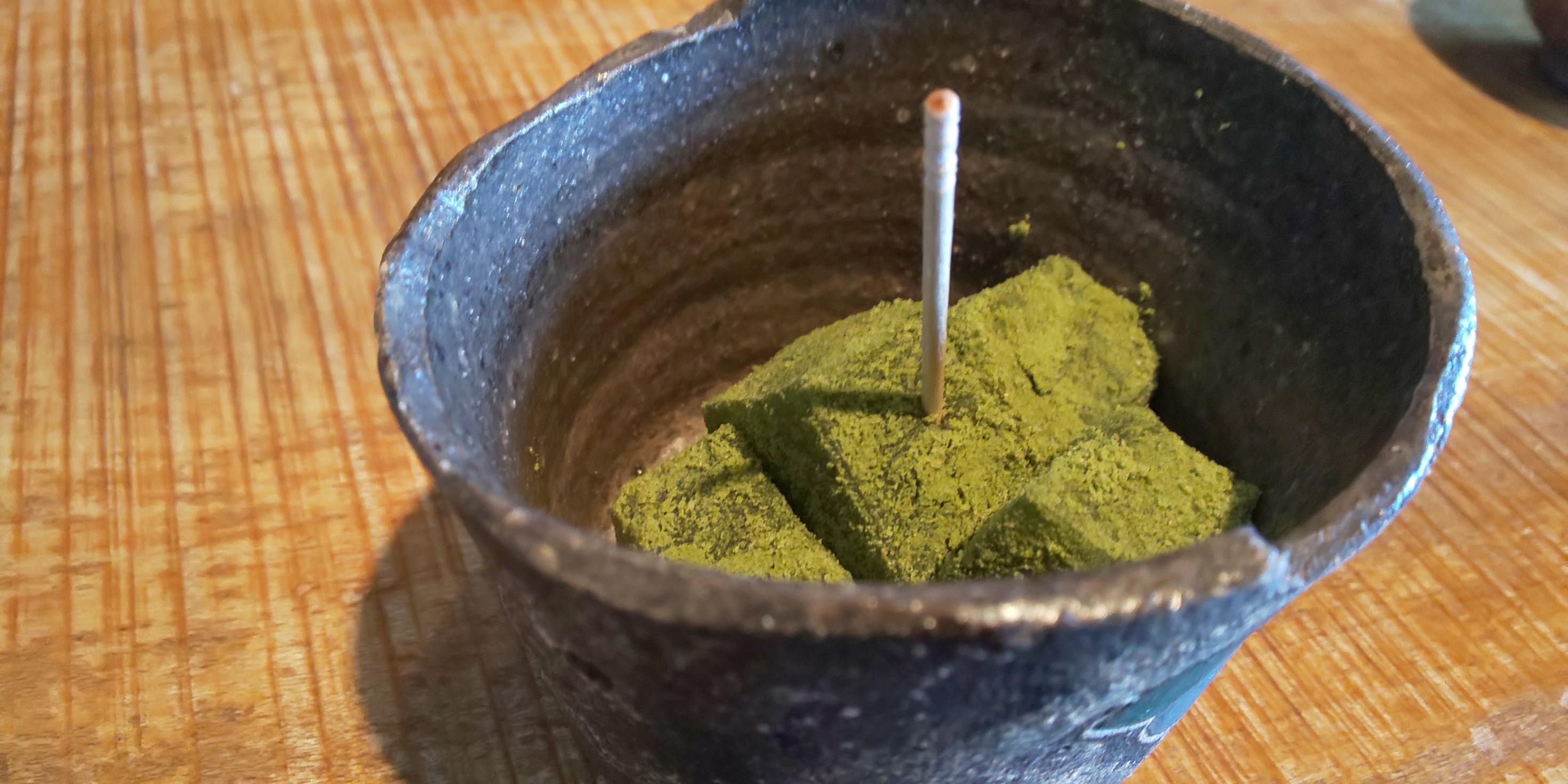 美味しく楽しく料理を堪能して食後に「抹茶わらび餅」をいただきました(*ノ▽ノ)