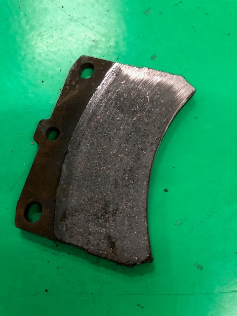 見てみるとブレーキパッドの残量がなくなってしまいブレーキローターを削ってしまっていました。