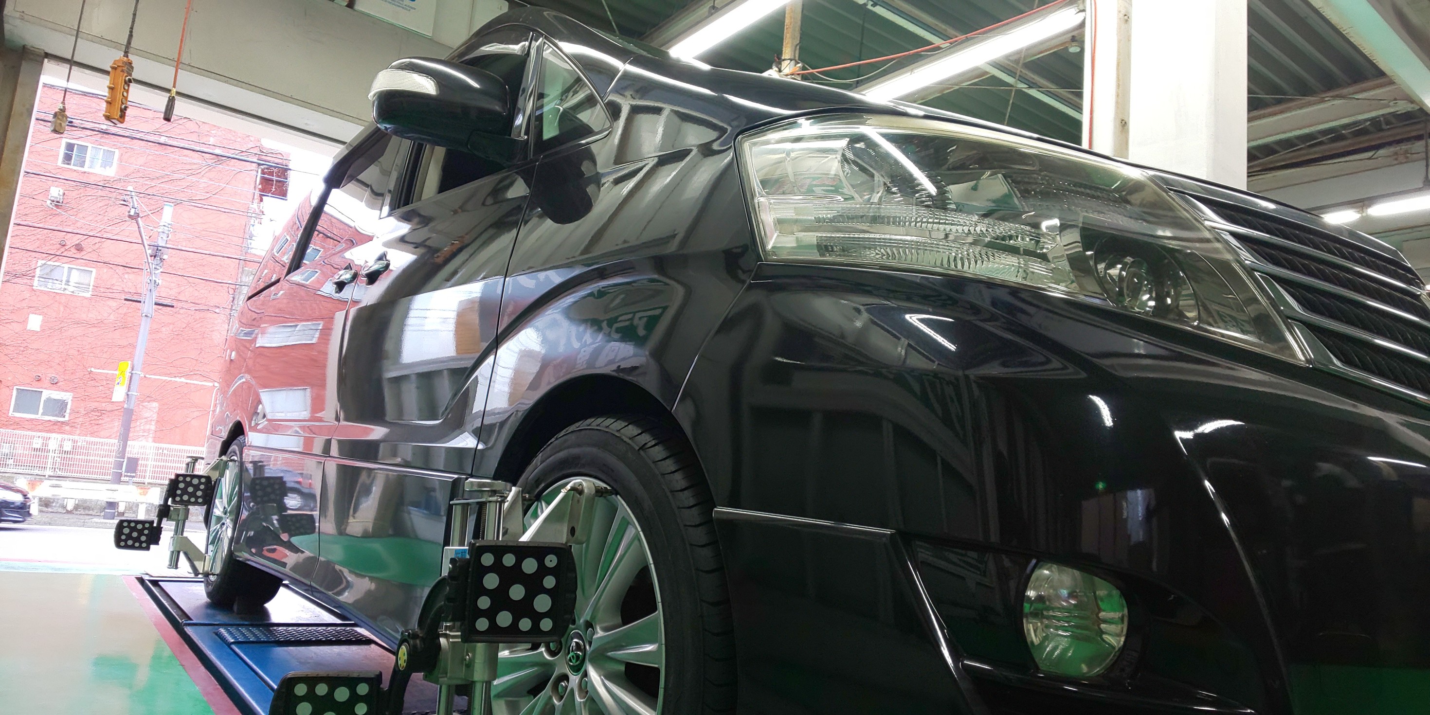 フロントのハブベアリングを交換してから車の挙動がおかしいのでアライメント調整を見てくれとご依頼されました。