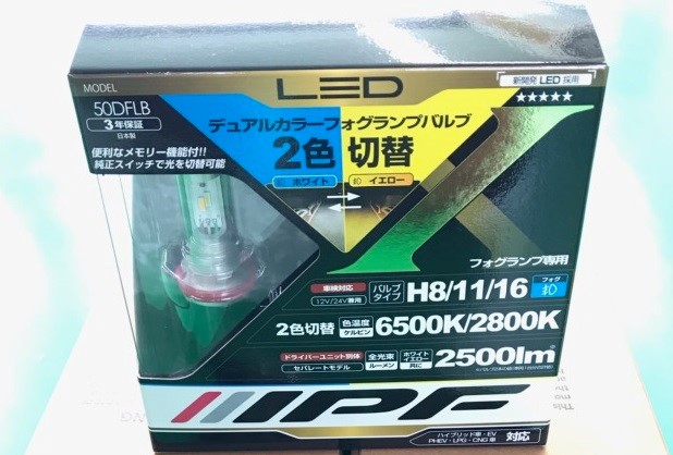 LEDは人気の「IPFのデュアルカラーフォグランプバルブ」を取り付けます。