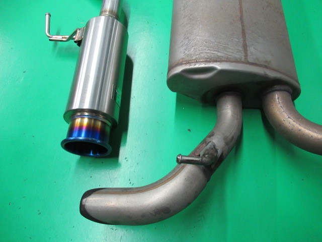 見て分かると思いますが、左が新品マフラー、右が純正。