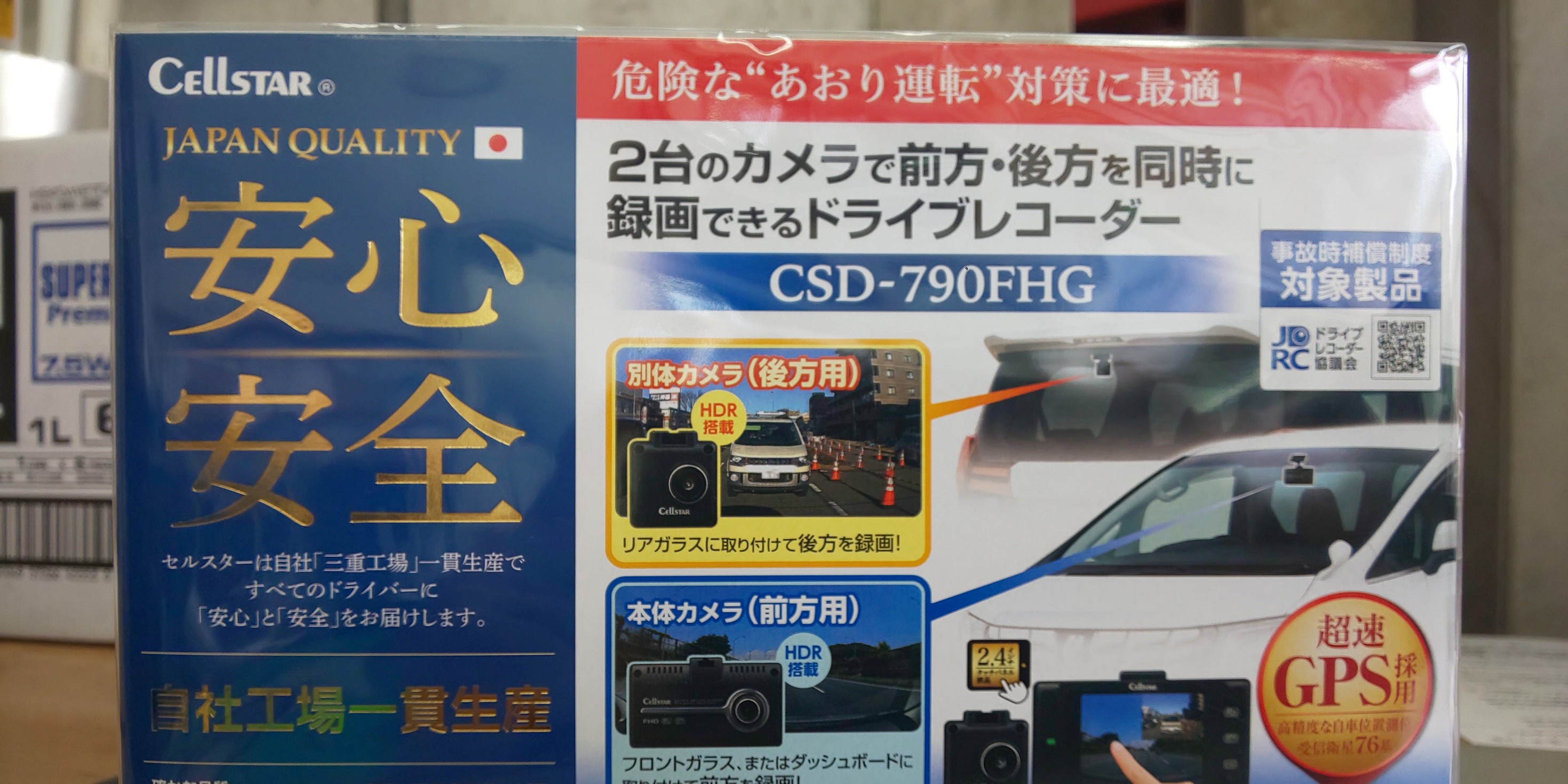 取り付けたドライブレコーダーは「セルスター CSD-790FHG」です。