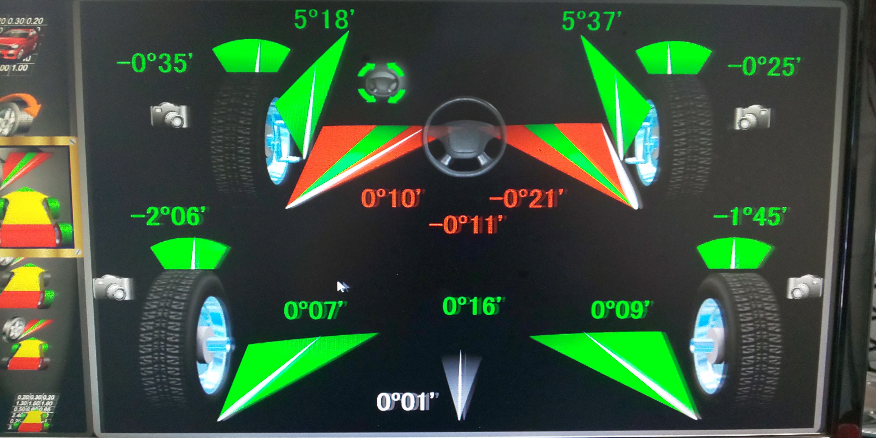 こちらのお客様は左前を鈑金修理されたとのことでアライメント調整をさせていただきました。