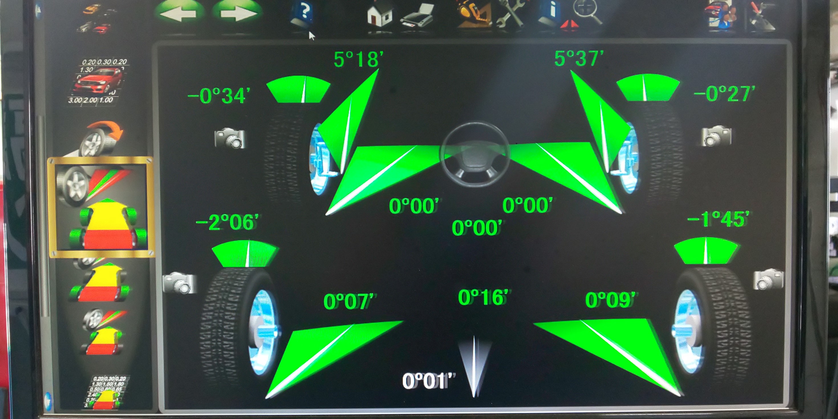 鈑金修理など足回りまで交換された場合にはアライメントの数値はズレてしまいます。