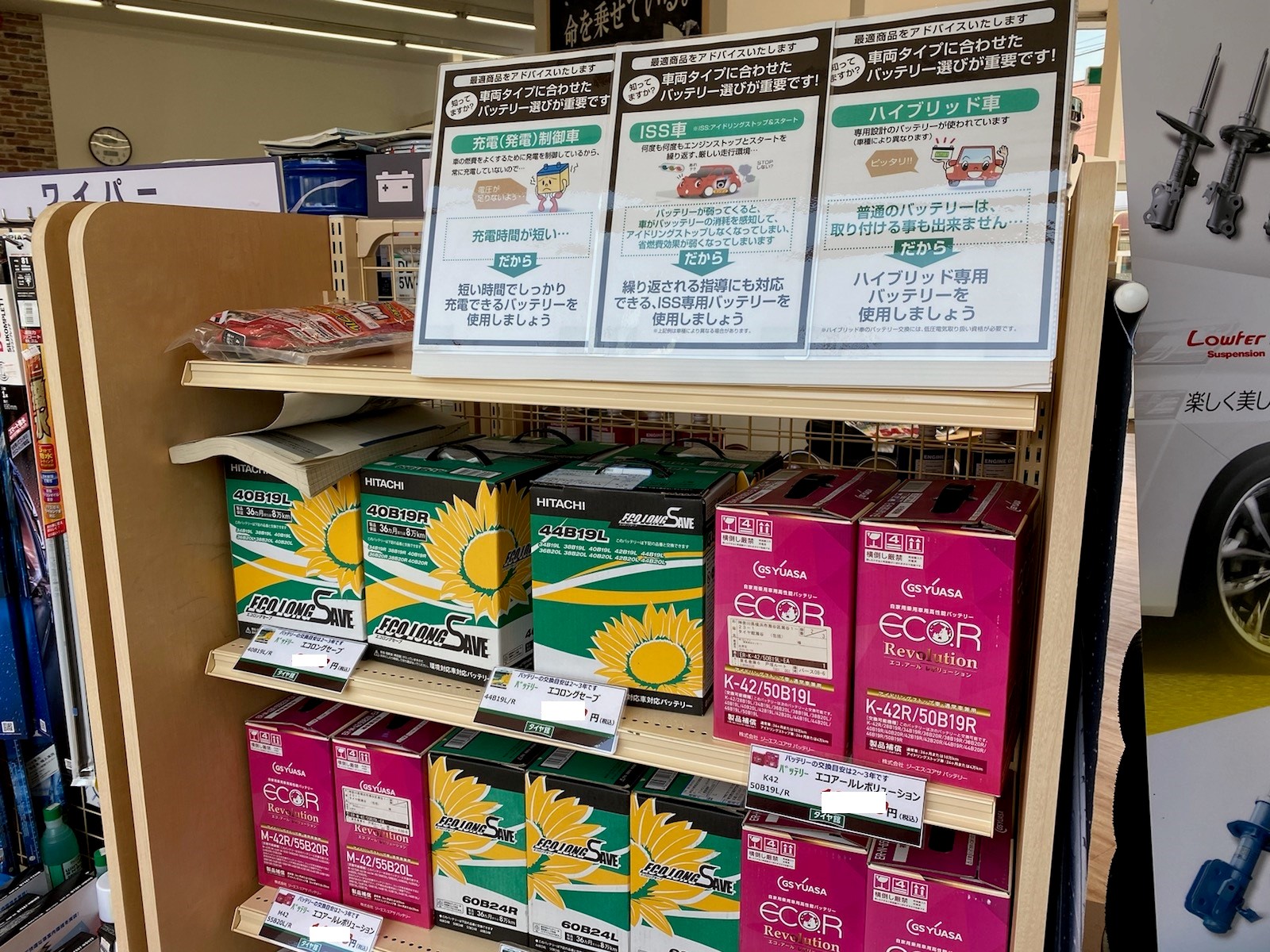 アイドリングストップ車に対応したバッテリーも常時在庫しております。