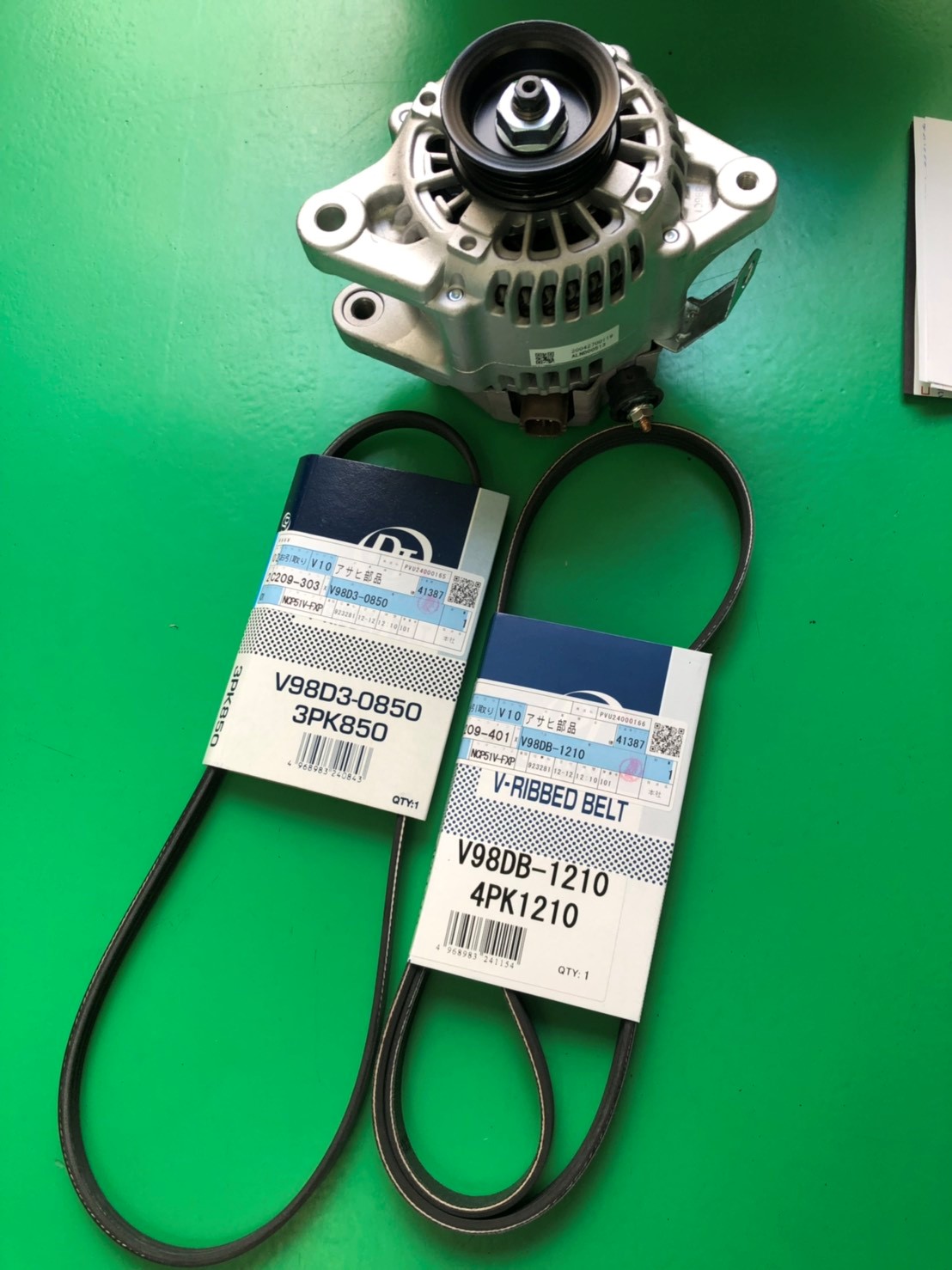 オルタネータはリビルト品で交換しました。