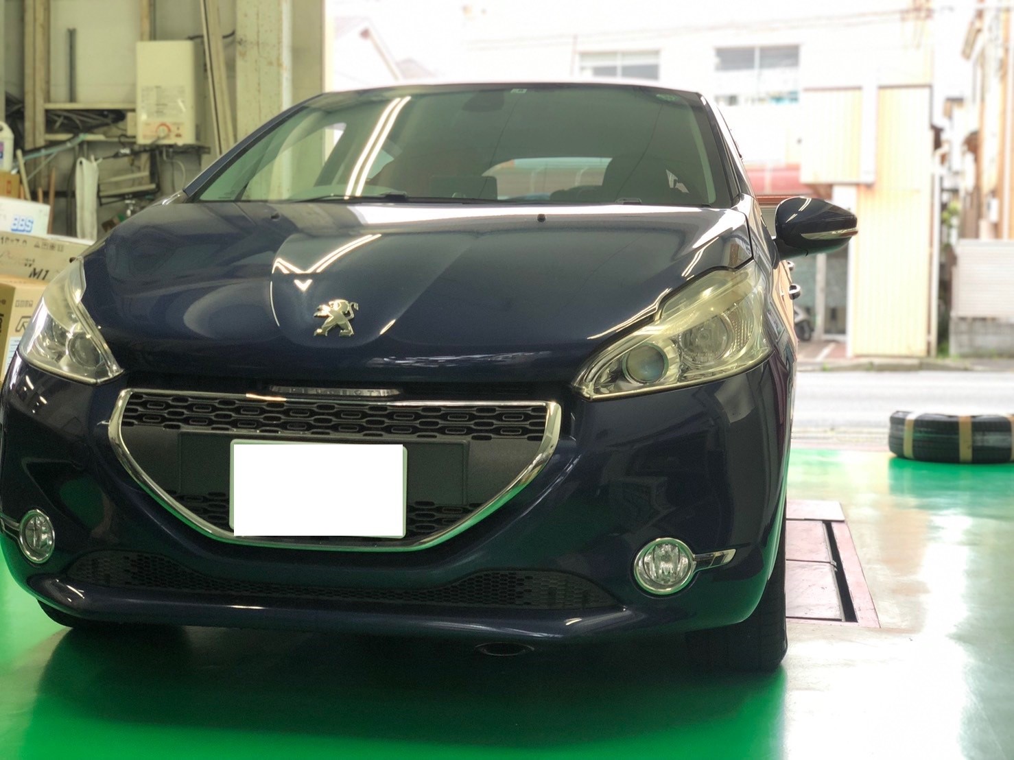 さて、今日は「プジョー 208」の前後ブレーキパッドとブレーキローターの交換です。