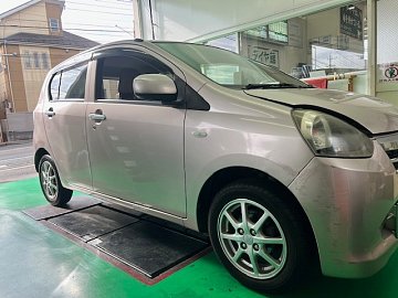 ブレーキパッド交換をご紹介します。車はダイハツ「ミライース」です。車検でお預かりしたお車です。車検見積もりした時にブレーキパッドの残量が減っていたので交換しました。 車検、整備のご相談承っております。