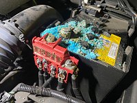 先日の閉店後のお話です。 残って仕事をしていましたら一人のお客様が歩いてご来店されました。 「近くでバッテリーが上がってしまったのですが・・・」 早速お客様と一緒に現地へ行きバッテリーの状況を確認してみたら・・・ バッテリーが劣化しすぎてこんな有様に・・・ バッテリーのプラス側の端...