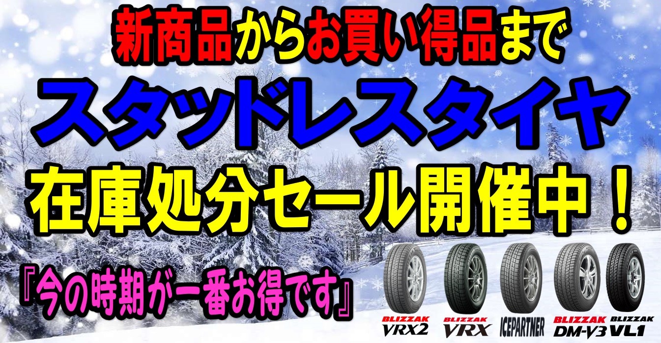 今年も毎年恒例の「スタッドレスタイヤ在庫処分セール」を行います。当店で在庫しているブリヂストンのスタッドレスタイヤ全品をお買い得価格でご提供いたします。 「今年は寒い!」なんて言われておりますが、ここ横浜地域ではまだ積雪はありません。 それでも3月の中旬まではまだまだ寒い季節が続...