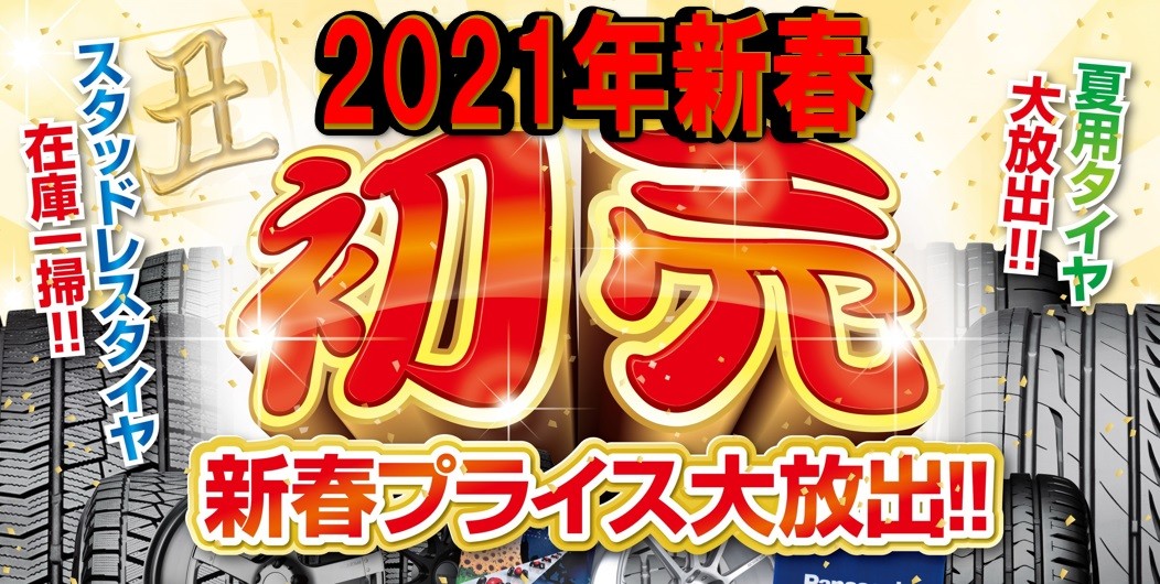 当店では1月3日より「新春初売りセール」を開催いたします。 冬のドライブの必需品「スタッドレスタイヤ」はもちろん、ノーマルタイヤもアルミホイールも「新春初売り特別価格」でご提供いたします。 ぜひご期待ください。 お客様のご来店をスタッフ一同お待ちしております。
