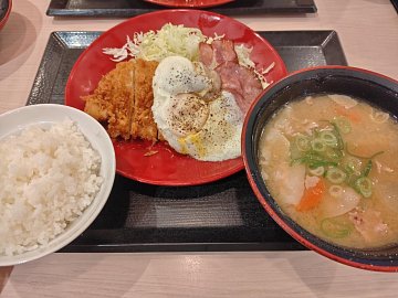 先日立ち寄ったご飯やさんで見つけました。 カツとベーコンとハムと目玉焼きが一皿になっている定食があり注文しました。 かなりの量でした。 もちろん美味しくいただき完食しましたよ。 だいぶ暖かくなりこれから梅雨時期になります。 雨の日の視界確保にワイパーブレードの交換はいかがですか? ...