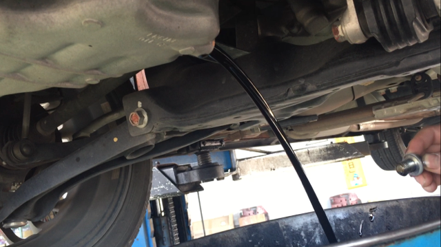 オイル交換では古いオイルの抜き取りから始めます。
