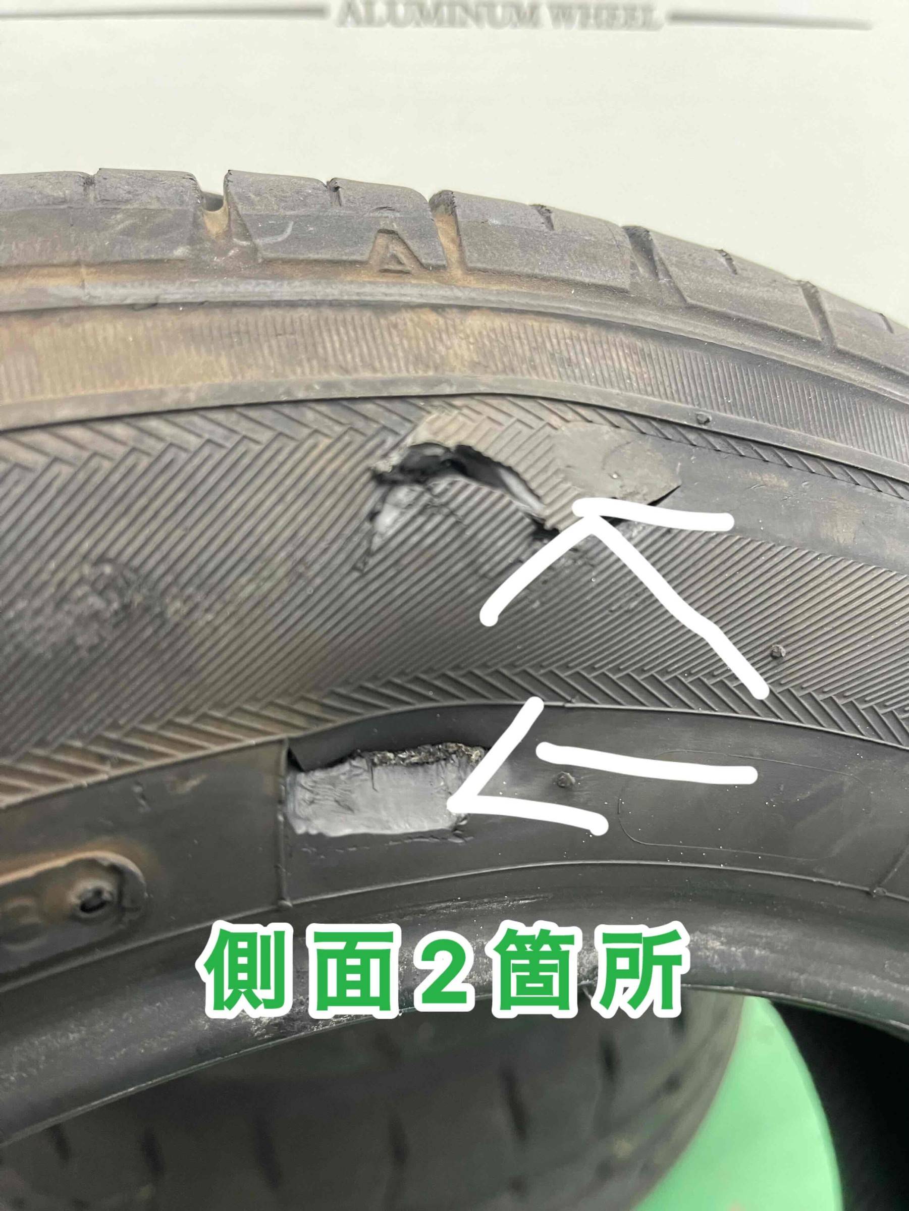 お車はトヨタプリウスで、タイヤ側面が2ヵ所が完全にダメな状態でした。